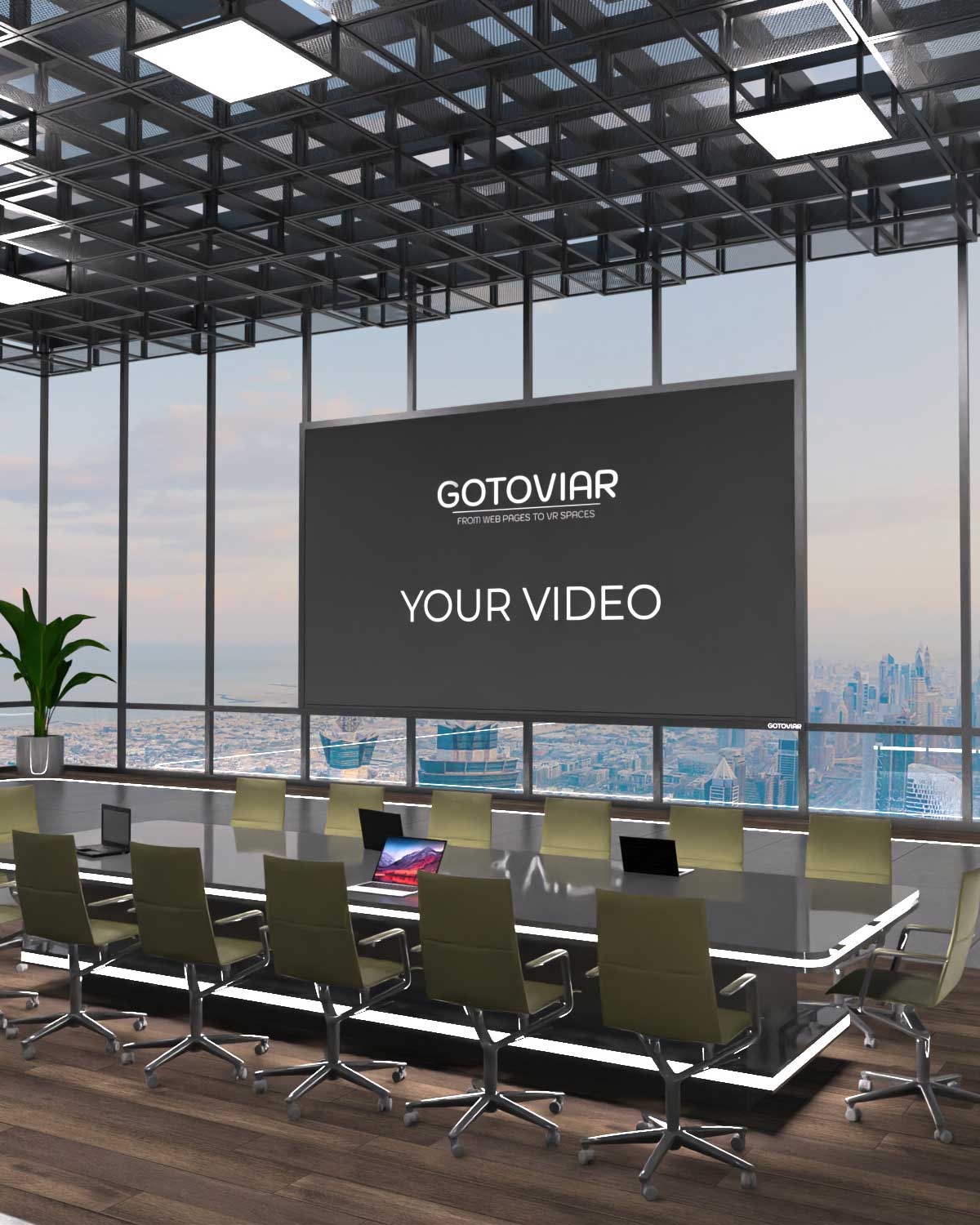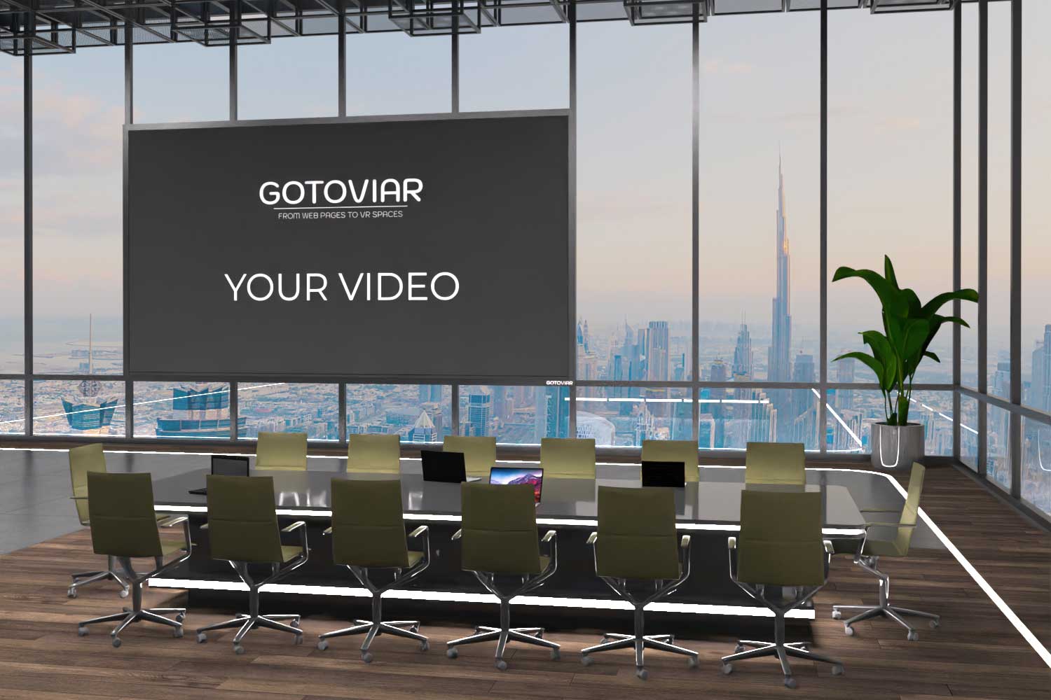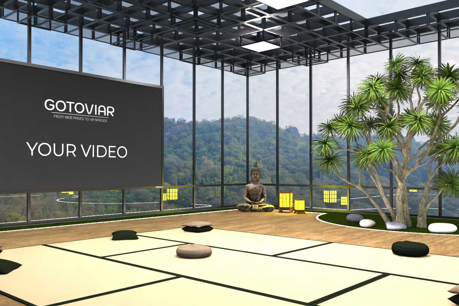 Bekijk een 2D-video op een virtueel scherm in de room, volledig te personaliseren.